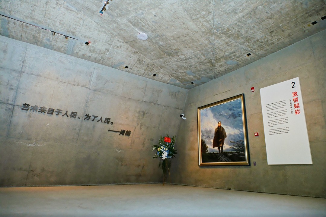 肖峰艺术馆的空间叙事与展览内容共同构建起“革命传统—学院传承—当代传薪”的三重叙事逻辑,使艺术馆不仅成为作品的容器,更升华为两位“时代之子”艺术精神的物化象征。这里永久收藏和展出肖峰、宋韧先生的重要艺术作品,从而成为这对“时代之子”革命文艺的精神闪耀之地。两位先生的艺术人生始于20世纪40年代的抗日烽火,与半个多世纪以来,尤其是共和国革命艺术的发展历程紧密相连;与民族独立振兴、文化融合自强的漫漫长途的梳理和反省休戚相关。时代的目标一直是这对革命伉俪创作的源泉,他们坚持的是写真情的写实主义,用革命人的担当精神实践着自己的艺术理想,将艺术创造涵融在时代革命的大潮之中。肖峰艺术馆让我们有机会面对他们的艺术创造和艺术人生,从多方面较为深入地探寻两位先生的艺术生涯,把握他们为人民写照的基本价值和深远意义。