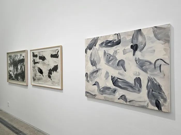 李康昭,《鸭子》,最右边的作品是《无题-89032》(1989年)。(摄影:宋庆恩)