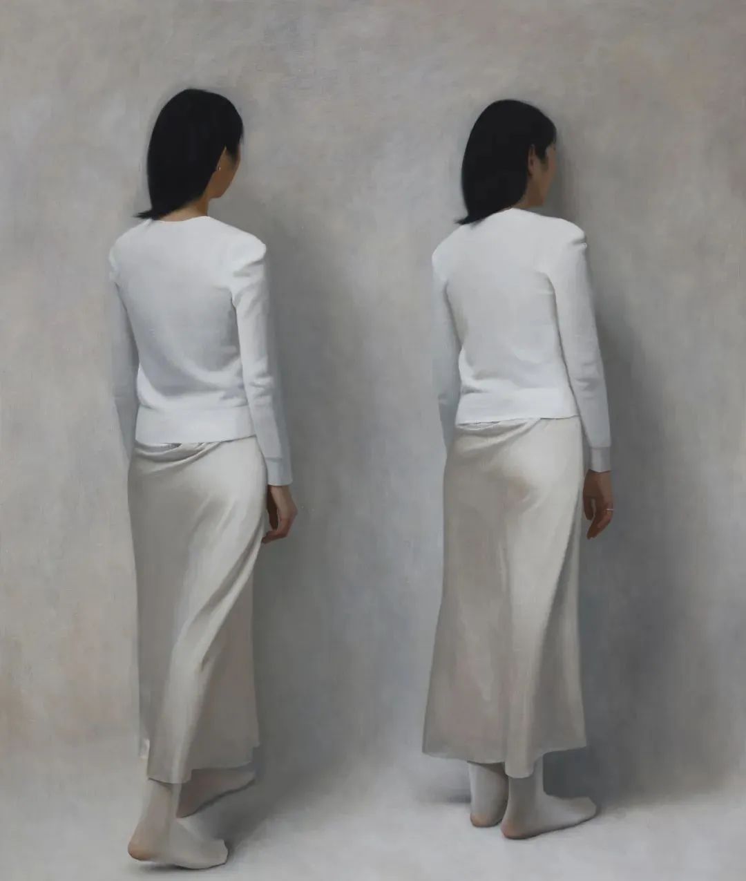 植天树的写实绘画令人想起摄影术发明初期,那些因长时间曝光产生面部模糊的早期人像——在急速变迁的时代,清晰反而成为奢侈。这种细看由不同笔触所构建出的真实,经过他思想的提炼,精心的安排与处理,逐渐揭露出他个人的独特视像。