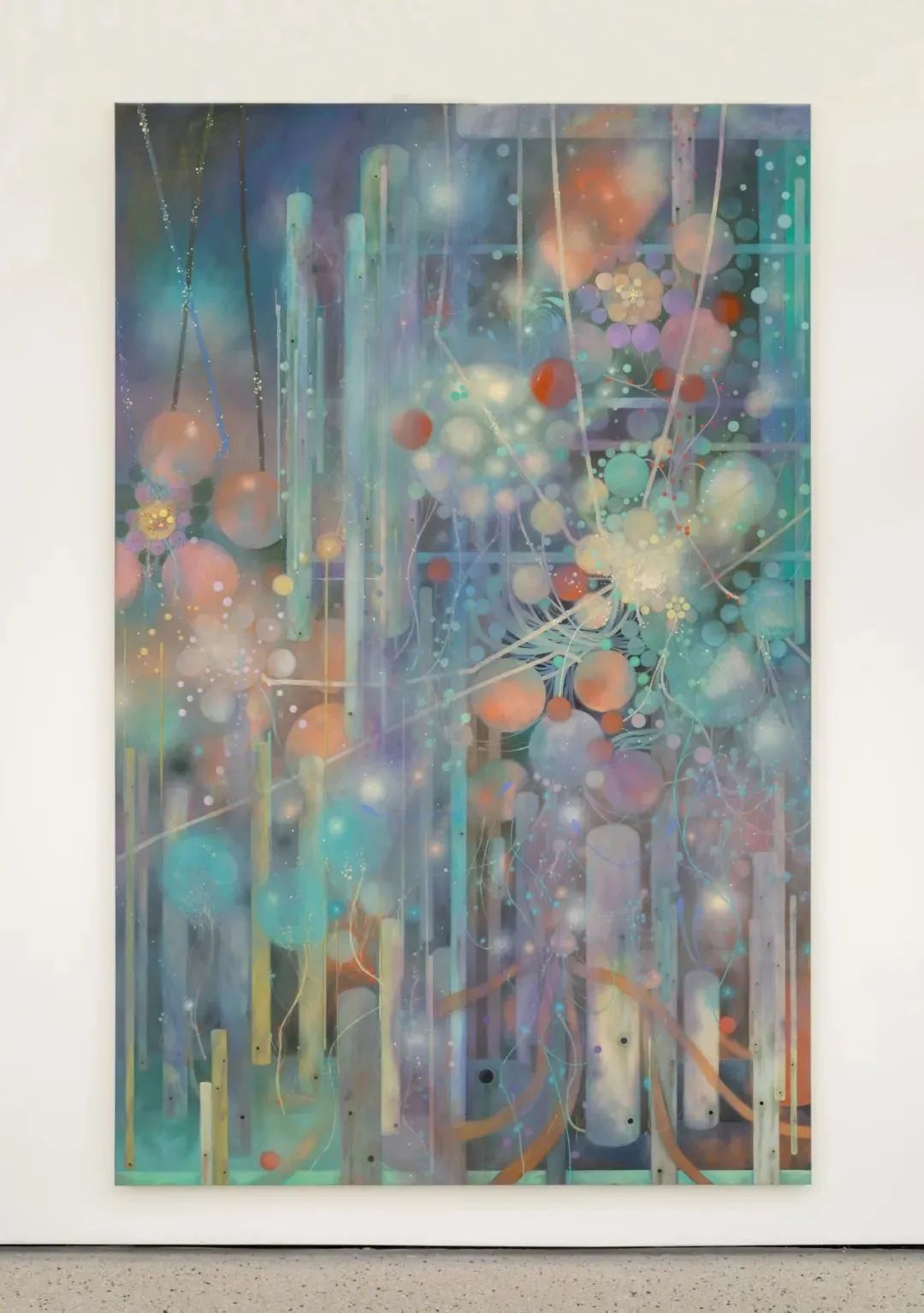 裴河君的作品拥抱抽象,从具体形式转向对数字化现实的探索。通过摆脱僵化结构,她创造出色彩和线条自由流动的空间,反映信息的快速发展以及人们与技术的互动。
