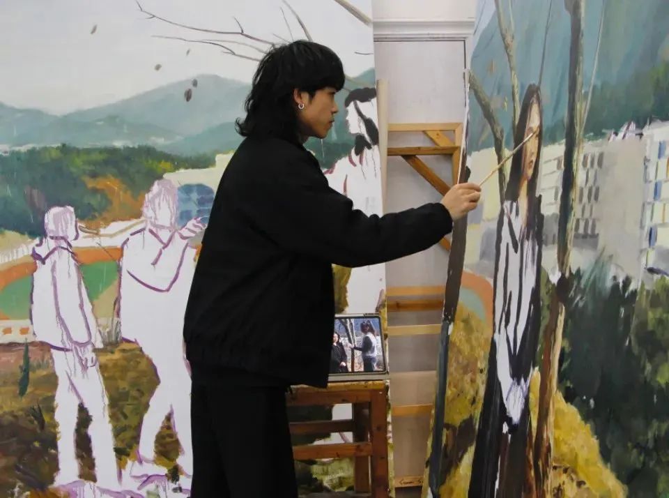 他的创作围绕自身真切的生活感受展开,绘画对象多是自己和他的朋友,将古典写实技法与当代生活记录相结合,通过自画像与同伴群像的交替描绘,呈现出中国年轻一代对未来的不确定、迷茫、犹豫状态。