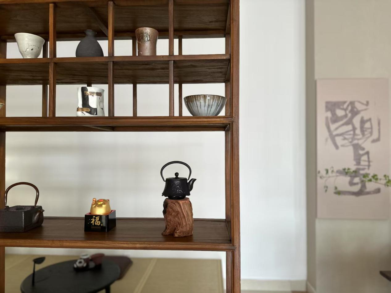 中式茶席背后,名家字画与摄影作品交相辉映,如同历史与现代的对话,既有岁月沉淀的厚重,又有时代创新的活力。这种独特的融合,让不同文化在同一空间内碰撞出全新的视觉体验,既海纳百川,又各具特色。