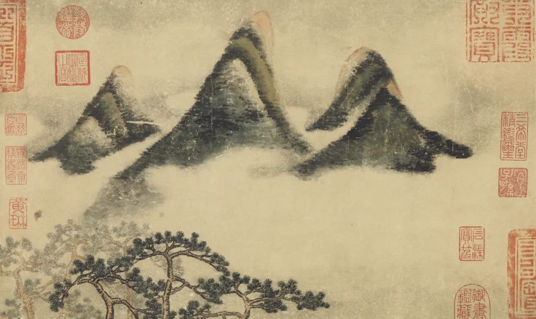 上:米芾《春山瑞松图》(局部),墨纸本,35×44.1cm,北宋,台北国立故宫博物院藏