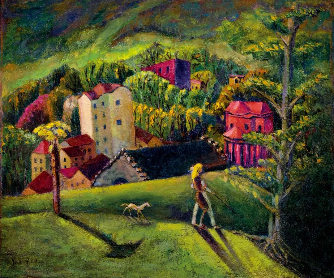 1939年随着二战爆发,朱沅芷离开巴黎来到纽约,笔下的风景也从此前明艳、松弛的笔调,转变为细腻、开阔、满怀情感的韵味呈现,完成于1940年代的《归途》正体现了这一特质。