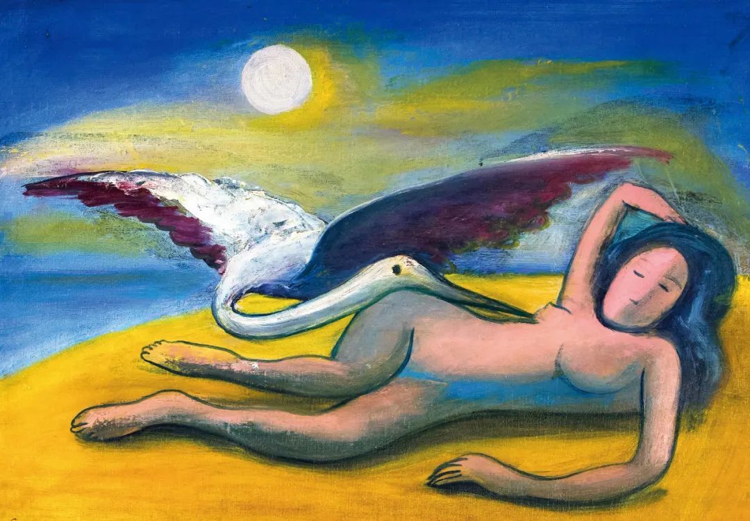 是次「无界之诗」专题呈现完成于1930年代末的《丽达与天鹅》与1940年代的《归途》,即充分展现了他对西方神话主题的东方创新演绎,以及将地景与梦境融合的浪漫主义再创。两件作品跨越其第二次巴黎时期(1936-1939年)和第二次纽约时期(1939年之后),以超凡的色彩与哲思,讲述着沅芷对爱情的憧憬、如梦的人生,堪为见证其走向成熟丰碑的精彩杰作!