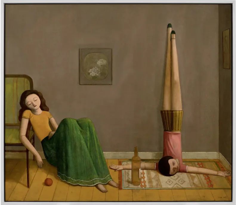 季鑫笔下修长优雅而忧郁的女孩,让人不由自主联想到巴尔蒂斯世界里的少女,静谧中又显现出东方的神秘。谈及这件作品,艺术家表示,“画这张作品的时候,我联想到弗朗切斯卡的《复活》,我这张作品就在呼应它的构图和人物状态。”