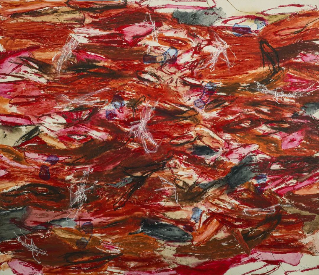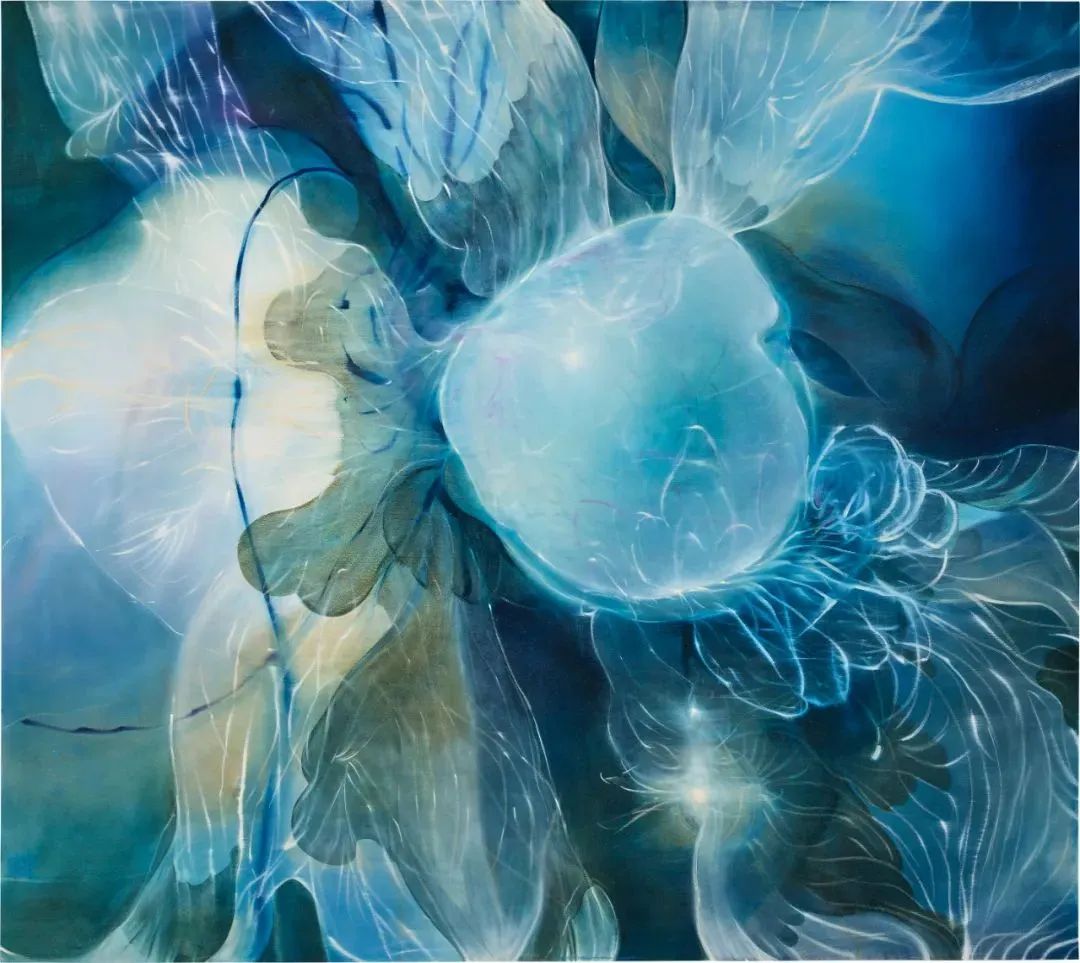 这件作品在艺术家2022年在上海举办的首次个展“雀在破晓”中首度亮相,画中纵情恣意的笔触像层层轻烟萦绕,包裹着暖流暗涌的冰面,彷佛沈寂的寒冰正如题燃起,渐渐融化。