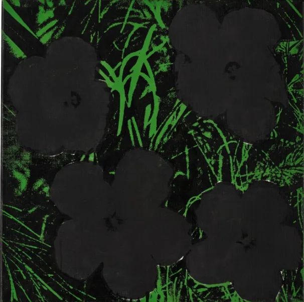 《花朵》系列是其最知名的波普图样之一。这幅创作于1964年的《花》是该系列中仅有的四幅在鲜艳的绿色背景之上呈现黑色花朵的作品之一。同年,沃霍尔在利奥·卡斯蒂里画廊迎来首次个展。目前《花》的最高价是3548.5万美元,为2024年在纽约佳士得创下,彰显出藏家对于这一系列的高度认可。