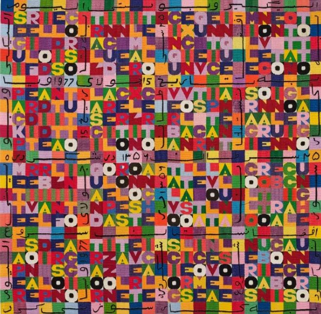 阿利吉耶罗·博埃蒂最广为人知的身份是他作为意大利“贫穷艺术运动”的一份子。这件作品由格莱斯顿直接购于阿利吉耶罗·博埃蒂基金会,属于艺术家广为收藏的阿拉齐(Arrazi)系列,基于有序和无序的并置,这些作品由看似杂乱无章的数字、字母组合而成,是艺术家对文字与序列的深度探索与解构。