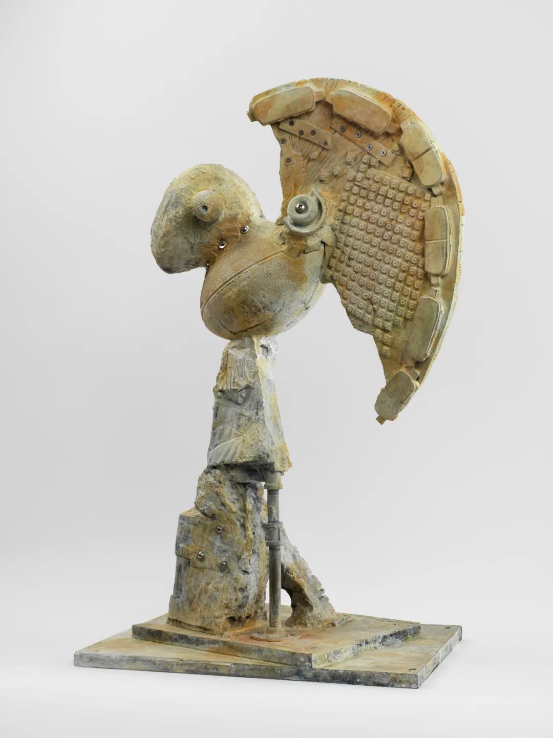 萨克斯在延续毕加索具有当代性的拼贴雕塑艺术的同时,也将其带入新的维度。他用汽车零件、“Nerf”牌橄榄球等现代材料取代了毕加索的铁丝网与钉子,但仍采用毕加索的拼贴方法制作雕塑。不同的是,萨克斯最终使用古老的“失蜡铸造法”(lost wax technique)将这些雕塑铸成青铜,并通过精细的上色或铜绿(patina)处理,将作品转化为更具经典艺术品价值的形态。这种做法反向解构了现代主义传统,让他的作品在当代艺术语境中确立了全新的身份。