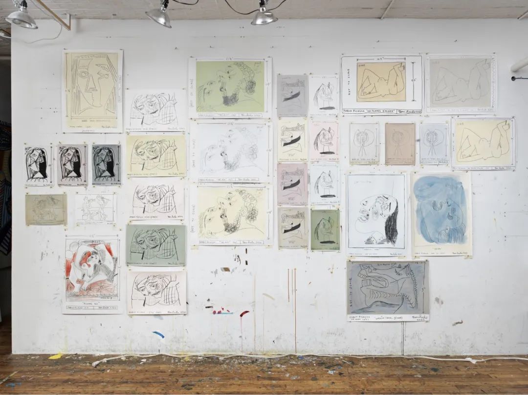 本次展出的绘画和纸上作品,延续了萨克斯对绘画、素描和色彩的关注,并源自他对毕加索“战争时期”(1937-1945)艺术的迷恋。萨克斯研究了这段时期毕加索的线条和造型语言,并发现其中与自己艺术实践的相似性。