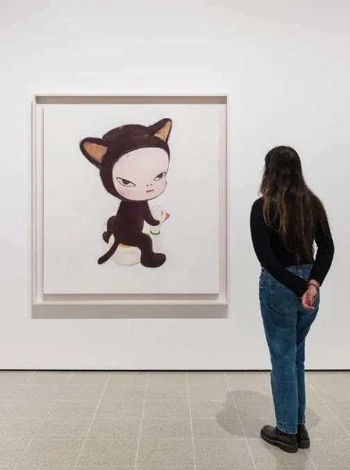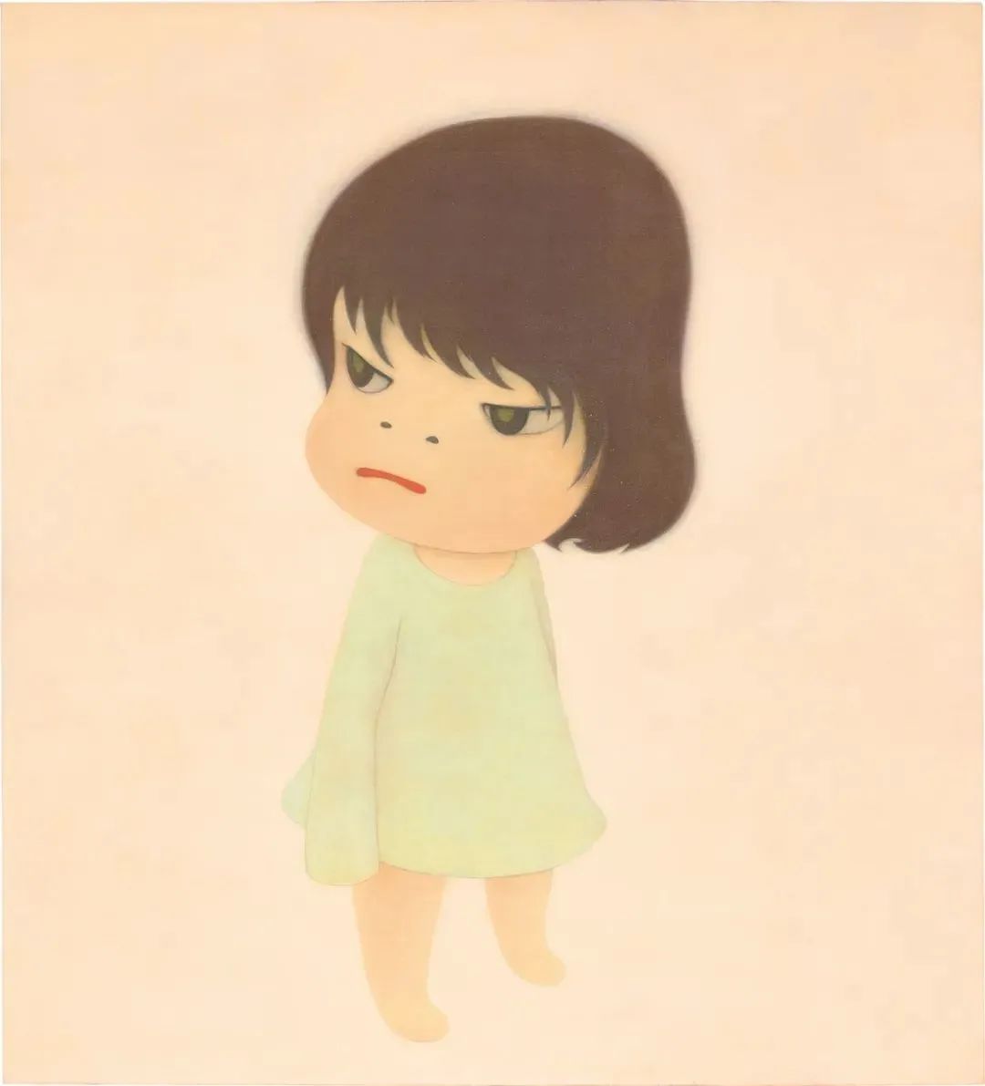 奈良美智笔下标志性人物——有着巨大脑袋、明亮的眼睛和充满挑衅、经常模棱两可的表情,既甜美又险恶,被视为当下火爆出圈的LABUBU的鼻祖,极具辨识度和记忆点,一度在艺术界引领“治愈系”风潮。