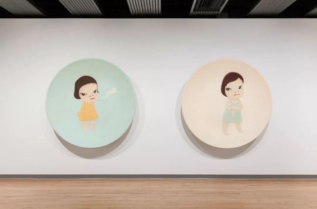 展览凸显了其作品中所蕴含的政治与社会议题。像《No Nukes 》(1998) 和 《Fuck Bomb 》(2011) 是在战后日本美军基地的阴影下,奈良美智将这些紧张感嵌入到人物不安的表情中,暗示暴力与纯真并非对立的力量。