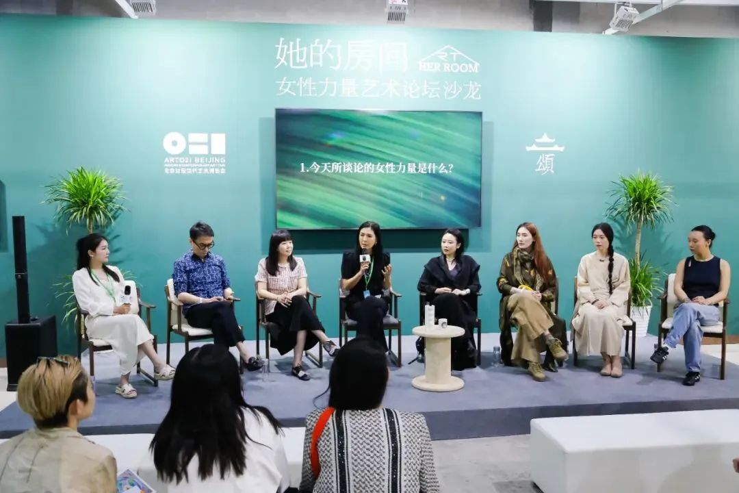 论坛嘉宾(从左至右):主持人宋琦、《ARTnews》中文版出版人郝宁、Robb Report中文版《罗博报告》品牌总经理兼全媒体内容官邢丽、頌艺术中心馆长苏芒、艺术家马灵丽、艺术家王愫、艺术家李依宸、艺术家大志