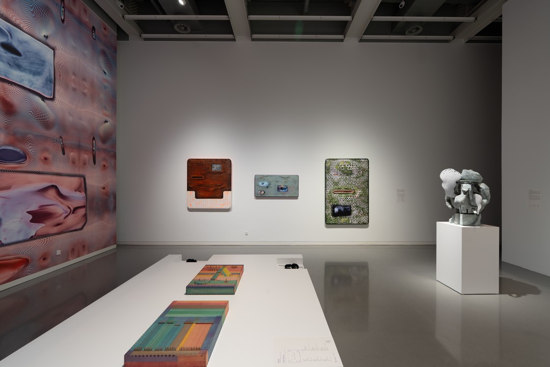 在展览的最后一个区域“空间与观念的多维探索”中,“绘画是什么?”不再是令人纠结的话题。该区域汇集刘韡、阿尔瓦罗·巴林顿(Alvaro Barrington)、徐梯善(Tishan Hsu)、郭天天、尼可·艾森曼(Nicole Eisenman)、刘毅、劳拉·欧文斯(Laura Owens)、赵要8位艺术家的作品,他们或在传统绘画技法基础之上构建多层的感官体验,或追溯原料制作过程所承载的文化或经济意涵,或从文献研究出发展开被多重折叠的时空,最终在展览的结尾呈现可被挑选的“颜料风景”。在此,绘画已不再是孤立分类的形式,而正与雕塑、物件、空间装置、文献研究、艺术家书、公众参与等媒介形式一同汇入复合的当代艺术领域。